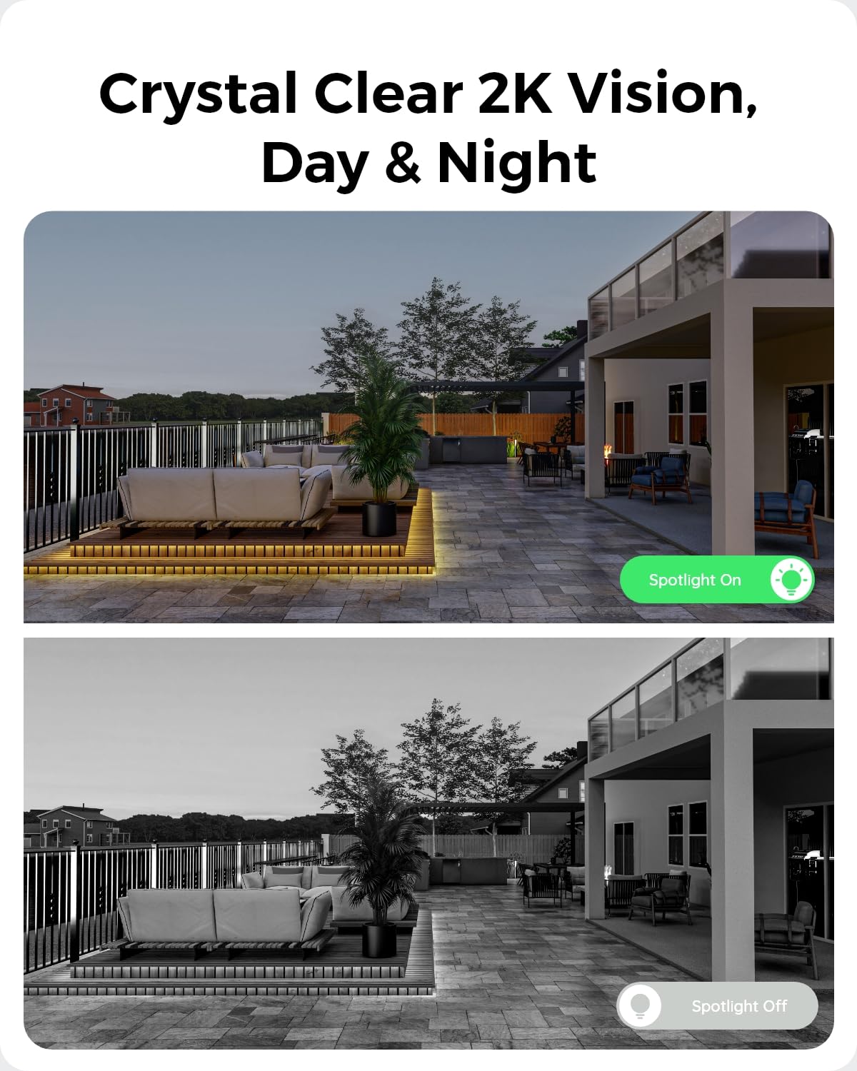 - [2K 3MP HD RESOLUTION] Capture every detail with exceptional clarity. When switching the spotlights on, enjoy superior nighttime surveillance in vivid color. Utilize the time-lapse feature to record and observe long-term events like flower blossoms or sunsets in just a few seconds or minutes.