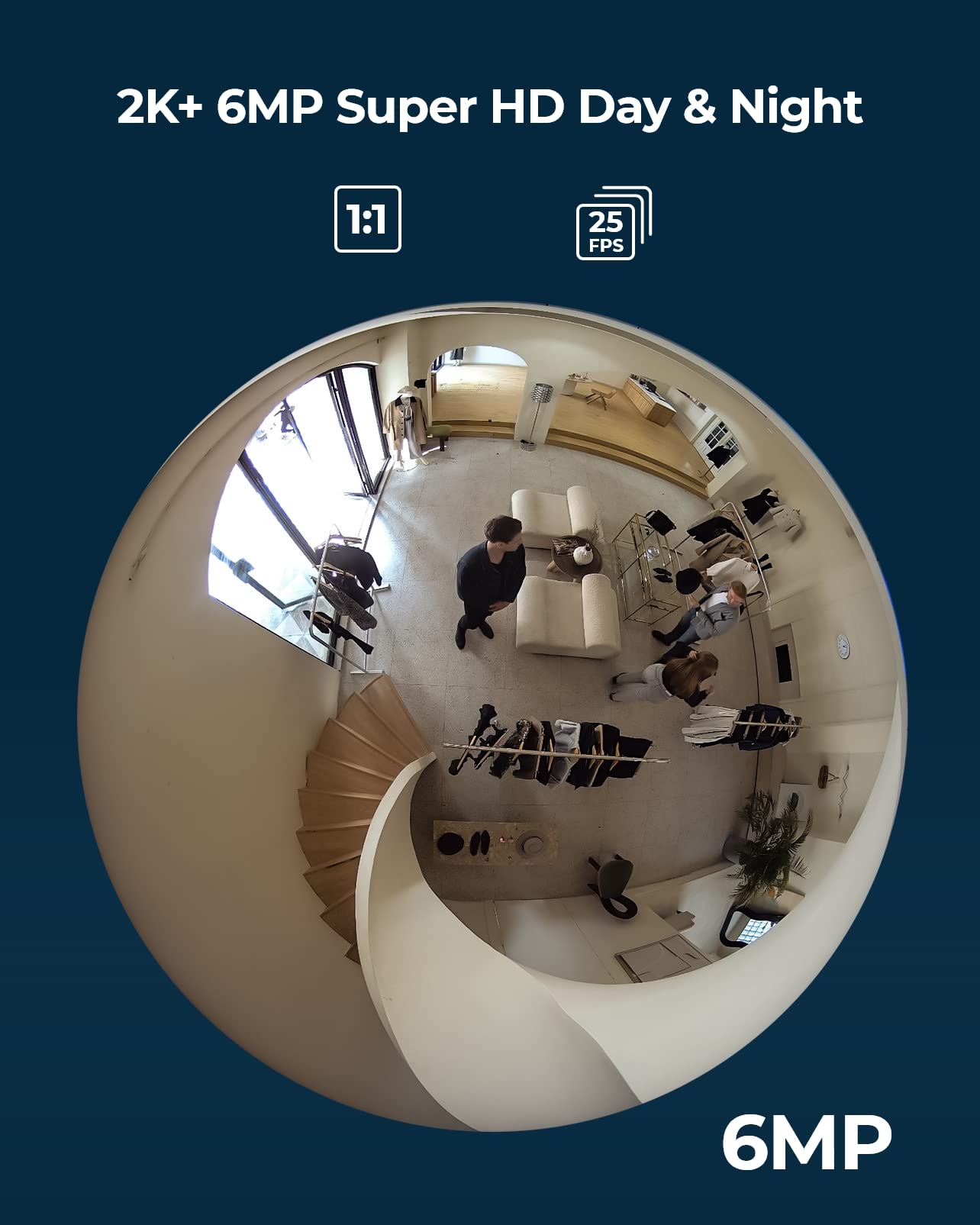 - 2K+ Super HD, Superb Visual Experience: Compared to a common 5MP fisheye cam, this 6MP camera provides sharper videos of the 1:1 aspect ratio and the 25fps high frame rate. See more vivid details.